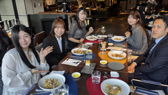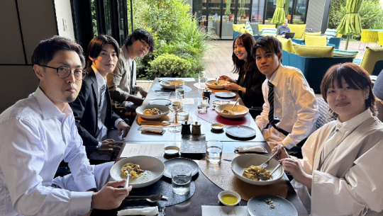 新卒入社で入ったメンバーや年の近い先輩たちも加わり、仕事の話からちょっとした雑談まで。