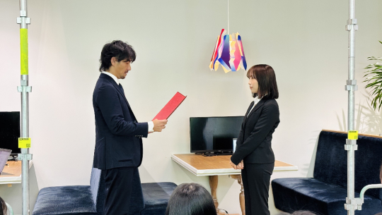 続いては、内定書の授与。一人ずつ名前が呼ばれ、前に出て内定書を受け取りました。