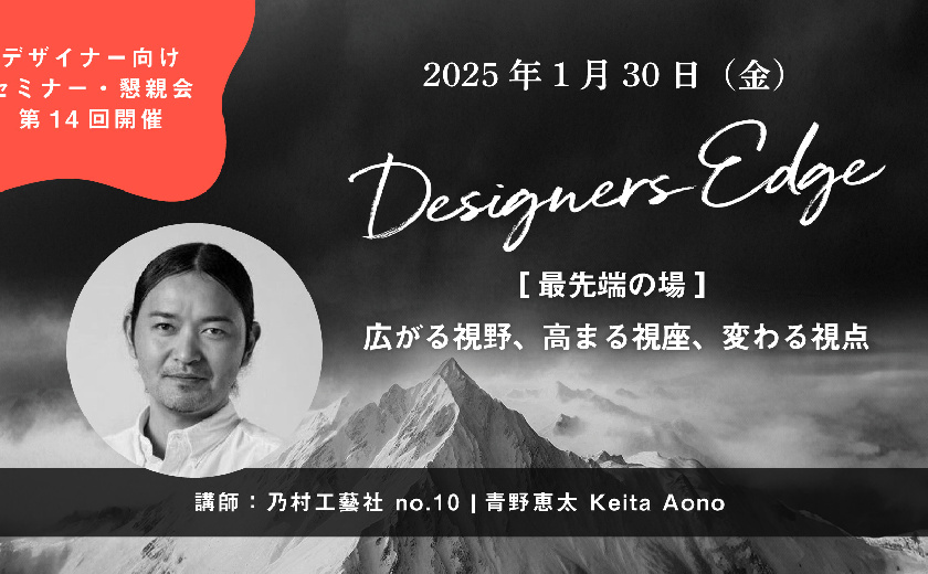 NEWS乃村工藝社 no.10の青野恵太氏が、空間デザイナーのための対話型イベント 「Designers Edge(デザイナーズエッジ)」に登壇決定
