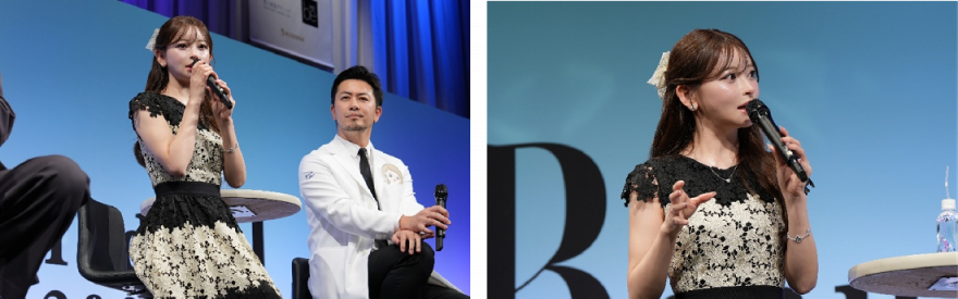 また、聖心美容クリニックの牧野陽二郎院長・伊藤康平院長による「フェイス&ボディデザイン最前線」では、顔面バランスからボディライン形成までの総合的な美容医療を実例とともに紹介しました。最後の黒崎みささん × 室孝明院長(ビスポーククリニック)による「自分らしさのリアルストーリー」では、美容整形の経験と心の揺れを率直に語り、多くの来場者の共感を集めました。